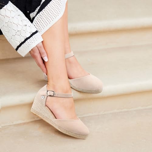 BCTEX COLL Women's Espadrilles Wedge Sandals Ankle Strap Platform Closed Toe Dressy Shoes