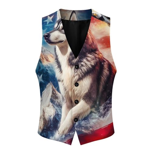 More information about Husky Ea-gles U.S Flag Men's Suit Vest Slim Fit Business Dress Party Pattern Waistcoat Vest Top