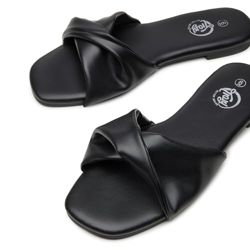 Trary Sandals Women,Leather Slides Women Comfortable Memory Foam Sandals for Women Footwear,Fashion Flat Summer Sandals for Women 2025 6