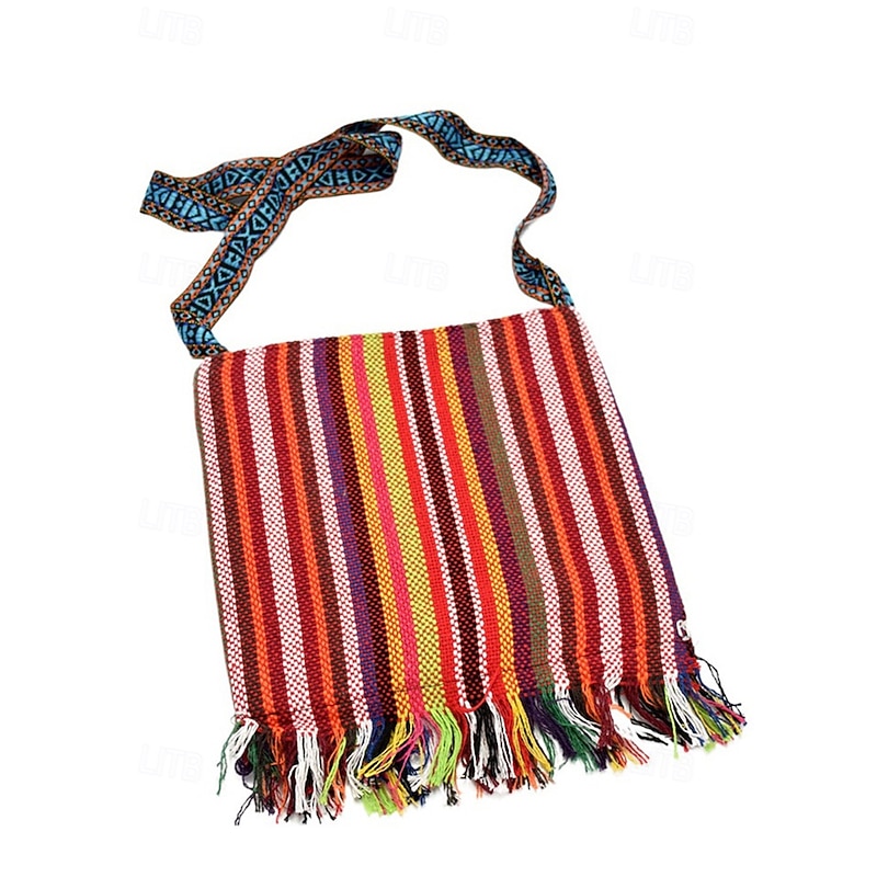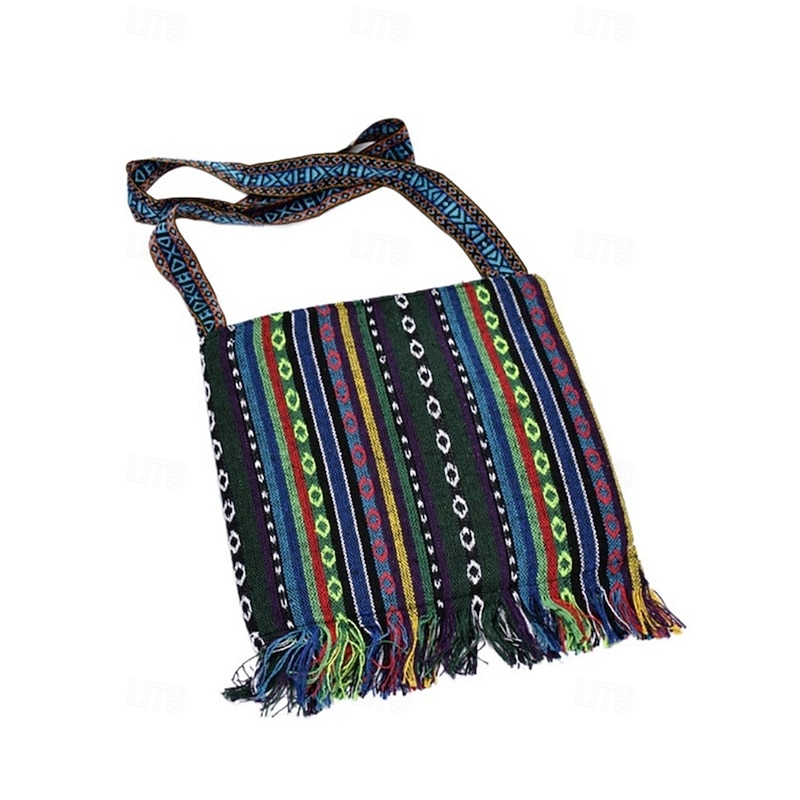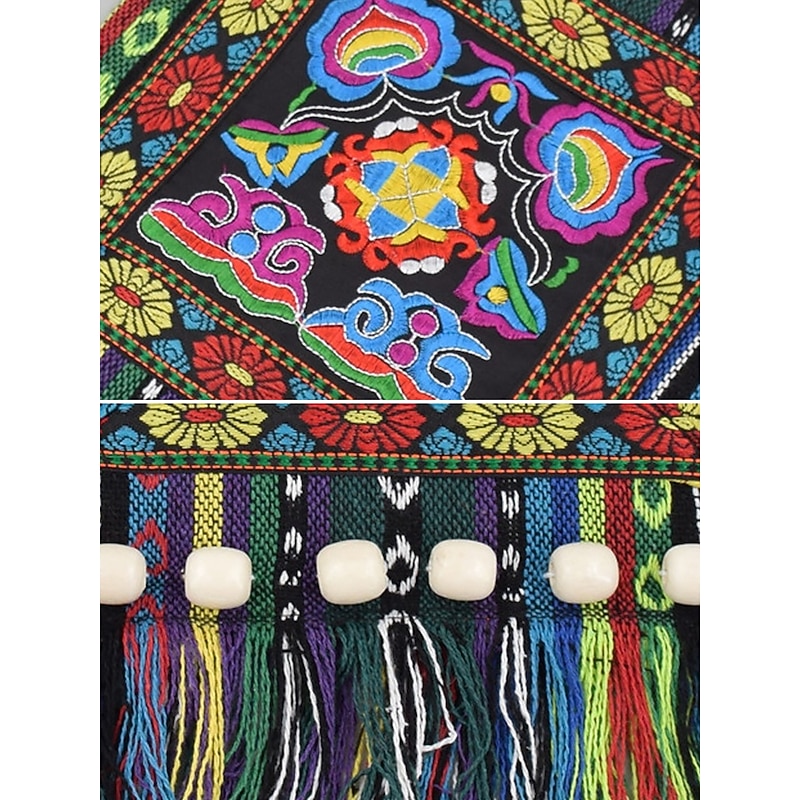 Women's Colorful Boho Embroidered Fringe Crossbody Bag – Ethnic Tribal Canvas Shoulder Purse with Tassels and Wooden Beads for Festivals, Travel and Casual Outings 12