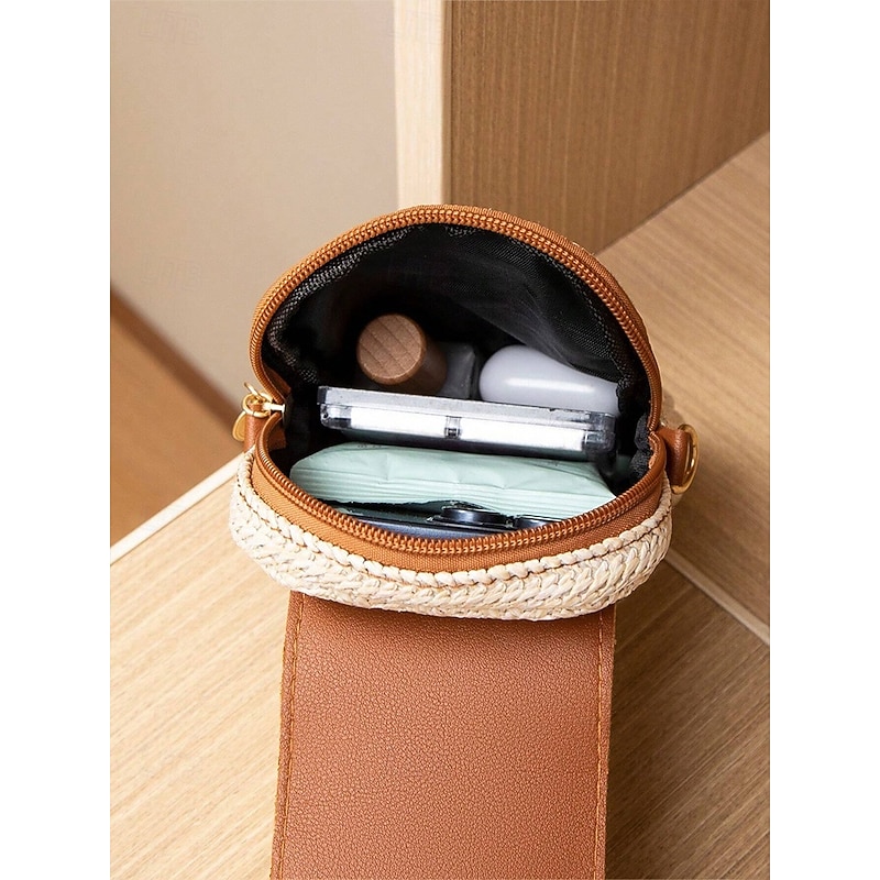 Women's Straw Crossbody Phone Bag with Cat Ears Pendant – Cute Woven Mini Purse, Casual Summer Style, Small Shoulder Bag for Teen Girls & Women, Ideal for Beach, Vacation & Daily Outings 9