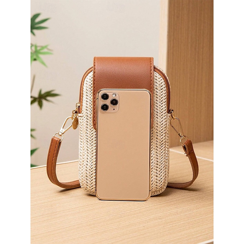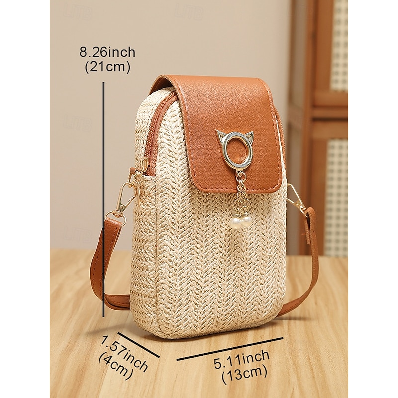 Women's Straw Crossbody Phone Bag with Cat Ears Pendant – Cute Woven Mini Purse, Casual Summer Style, Small Shoulder Bag for Teen Girls & Women, Ideal for Beach, Vacation & Daily Outings 10