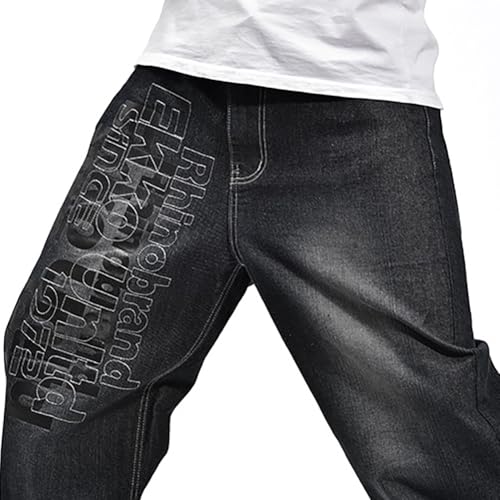 XYGJZ Mens Baggy Hip Hop Jeans Vintage Straight Leg Denim Pants Dance Skateboard Pants