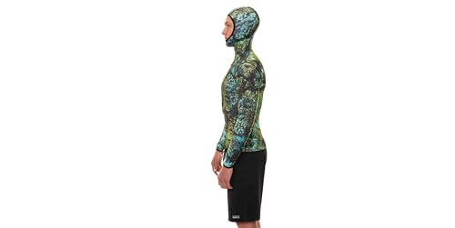 Fabric type: 85% Recycled Polyester/15% Recycled SpandexClosure type: ZipperTop style: RashguardFit type: RegularSun Shield: UPF 50 protection guards against sun exposure during extended water days.Lasting Comfort: Flatlock stitch ensures durability and comfort throughout your aquatic activities.Effortless Loading: The cushioned chest pad facilitates smooth and easy-to-use speargun loading.Eco-Conscious Craftsmanship: Made from 85% Recycled Polyester and 15% Recycled Spandex, embracing sustainability without compromising performance.Tailored Fit: Available in sizes from S to 3X, ensuring a personalized fit for all body types.