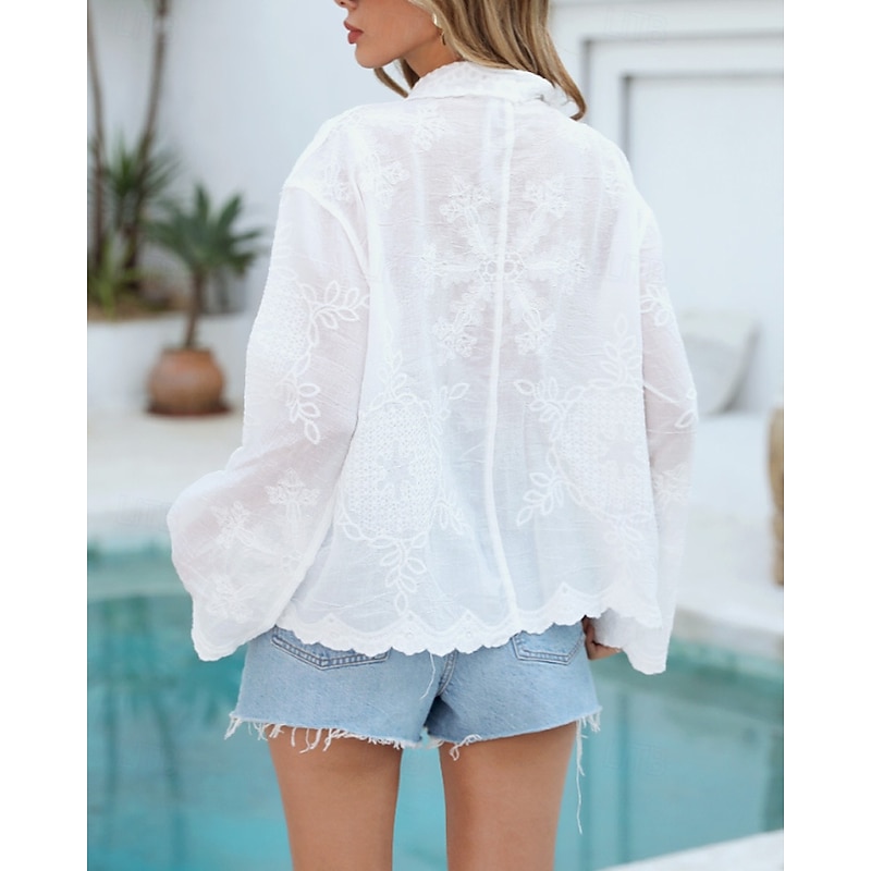 More information about Women's Swimwear Cover Up Swimsuit Buttons Tropical Beach Wear Plain Long Sleeve Bathing Suits