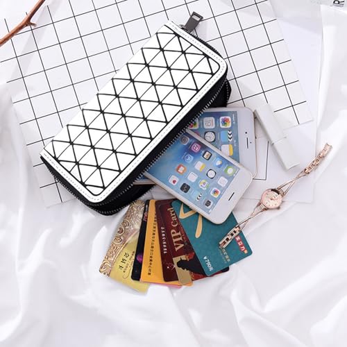 Women Wallet Slim RFID Blocking Geometric Quilted Clutch Purse Small Zipper Coin Card Holder for Daily Use Travel Party 7