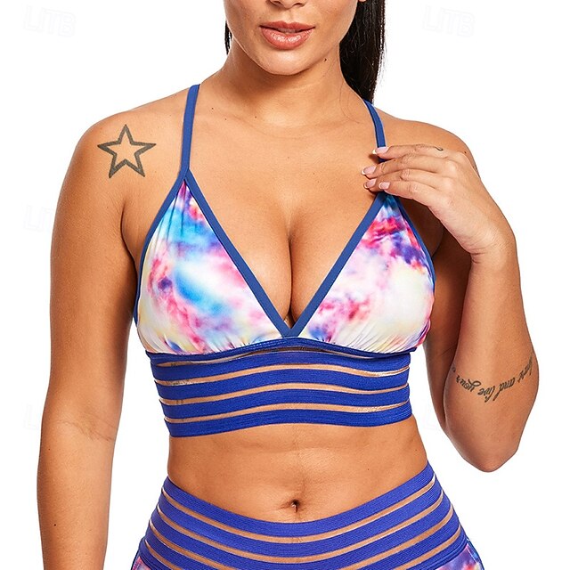 sought-after ! Women's Spaghetti Strap Bra Sports Bra Underwear Sexy Low Support Paded Tie Dye Sport Activewear Blue Gym Pilates Yoga