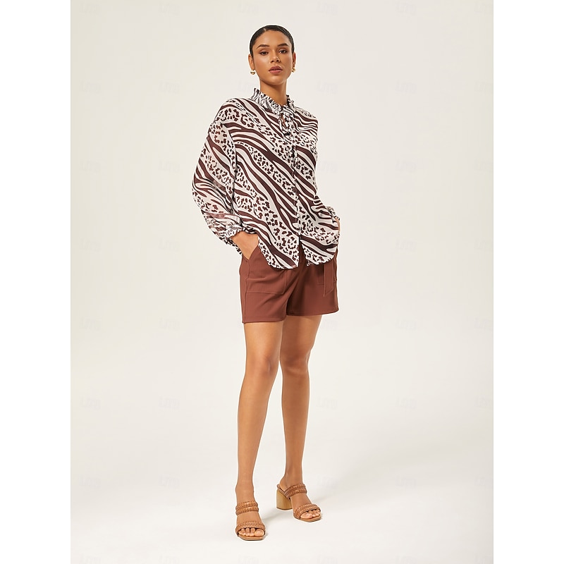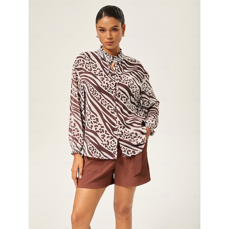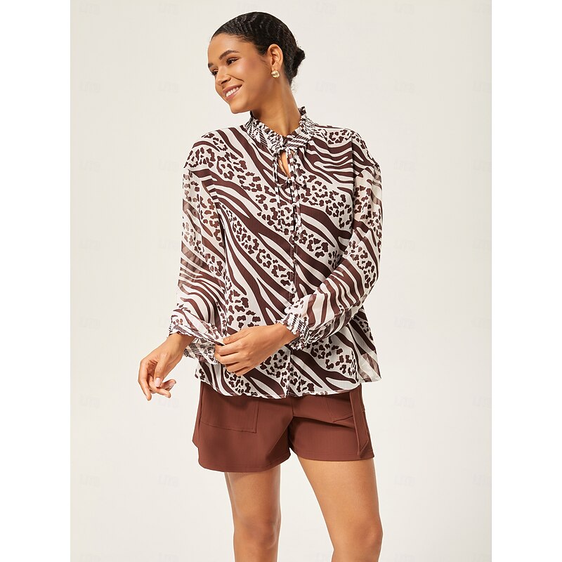 Animal Print Ruched Long Sleeve Pullover 7