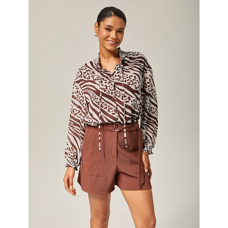 Animal Print Ruched Long Sleeve Pullover 10