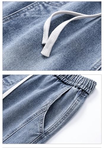 Men’S Workwear Straight Jeans Mid Waist Loose Fit Wide Leg Denim Pants Casual Drawstring Closure Jeans 7