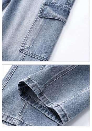 More information about Men’S Workwear Straight Jeans Mid Waist Loose Fit Wide Leg Denim Pants Casual Drawstring Closure Jeans
