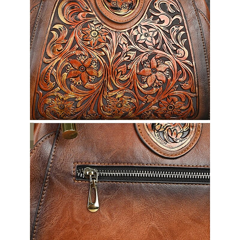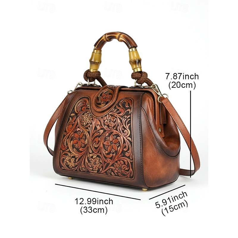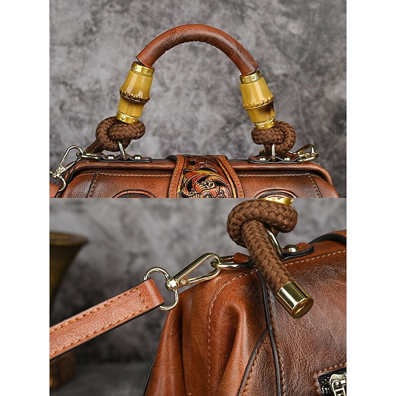 Women's Faux Leather Handbag, Vintage Embossed Shoulder Bag with Bamboo Handle, Elegant Crossbody Purse for Ladies Party, Work & Daily Use 11