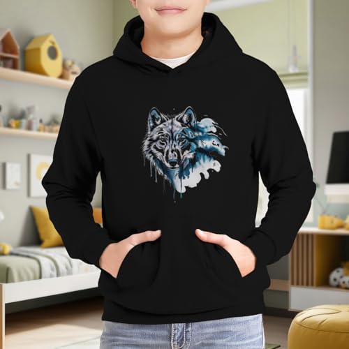 HOT ! Kids Watercolor Wolf Boys Girls Lightweight Kangaroo Pocket Fleece Hoodies