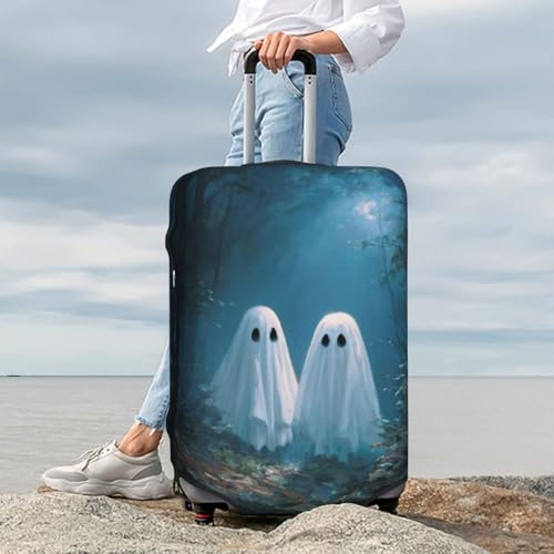 HOT ! Two Cute Ghosts In The Dark Woods Elastic Travel Luggage Covers Dustproof Scratch-Resistant Suitcase Protector Fit 22-24 Inch