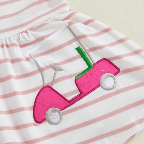 • Designs:Baby girl golf outfit,baby golf clothes,golf onesie baby girl.Baby golf cart and hole in one golf embroidery,sleeveless turn down collar stripe print romper with skirt hem and button detail,snap closure.Baby girl golf polo dress,baby girl summer clothes,super adorable