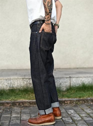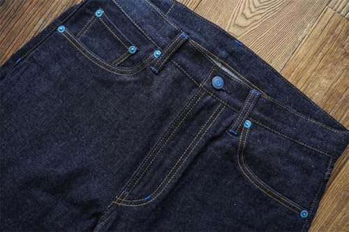 More information about Men’S Vintage Slim Fit Straight Selvedge Sanforized Denim Full Length Jeans Zipper Fly High Waist Indigo Wear Rivet