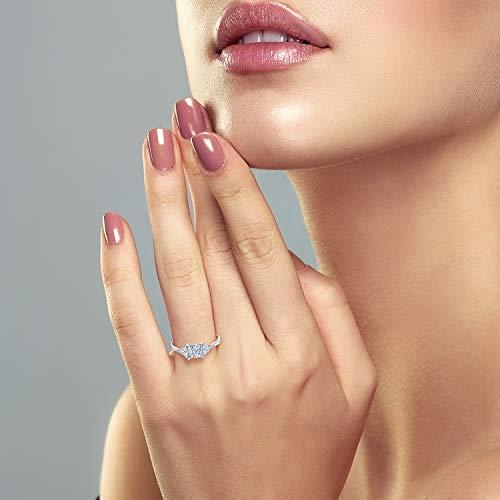 Ring size: 5Material: White GoldMetal type: Solid white goldMetal weight: 1.3 gGem type: MoissaniteExquisite Three Stone Design - This elegant engagement ring features a classic three-stone setting with a princess-cut 5MM center moissanite flanked by two 3.5MM trillion-cut moissanites. The trio of stones represents the coupleβs past, present, and future, making this ring a symbol of enduring love and commitment.Brilliant White Moissanite - Totaling 1.12 carats, the moissanite stones are renowned for their stunning clarity and sparkling brilliance, rivaling that of diamonds. These gems offer an ethical and affordable alternative without compromising on beauty or quality, perfect for the present-day bride.Premium White Gold: Made with high-quality 10K white gold, this ring showcases a lustrous and durable metal that perfectly complements the brilliance of the moissanite stones. It ensures a lasting and radiant symbol of love.These Moissanite: have been revolutionary in the diamond industry as a suitable replacement for diamond jewelry. Moissanite is tougher and will not chip as easily or lose brilliance as fast thus making it an excellent choice for buyers looking for amazing jewelry at an exceptional value.USA Based Company and Lifetime Warranty: As a USA-based company, we prioritize quality, craftsmanship, and customer satisfaction. Our commitment to excellence ensures that you receive a meticulously crafted product that meets the highest standards of design and quality. Our jewelry passes extensive quality checkpoints before being shipped to you. Enjoy prompt and professional support from our world-class customer service team, ensuring your satisfaction. Perfect for everyday use. superior materials and excellent craftsmanship ensure long-lasting durability.