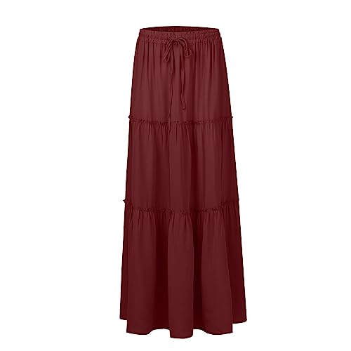 HOT ! Womens Pleated A-Line Elastic High Waist Maxi Skirt 2025 Summer Casual Flowy Swing Boho Long Beach Dress