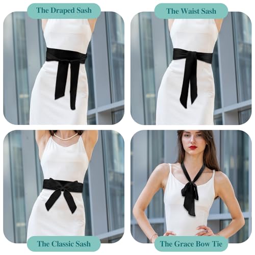 1Pcs Wedding Satin Sash Belt Long Black Waist Belt Women Dress Ribbon Belts for Bridal Bridesmaid Prom Formal Special Occasion Dresses Belt(2Inch Wide) 5