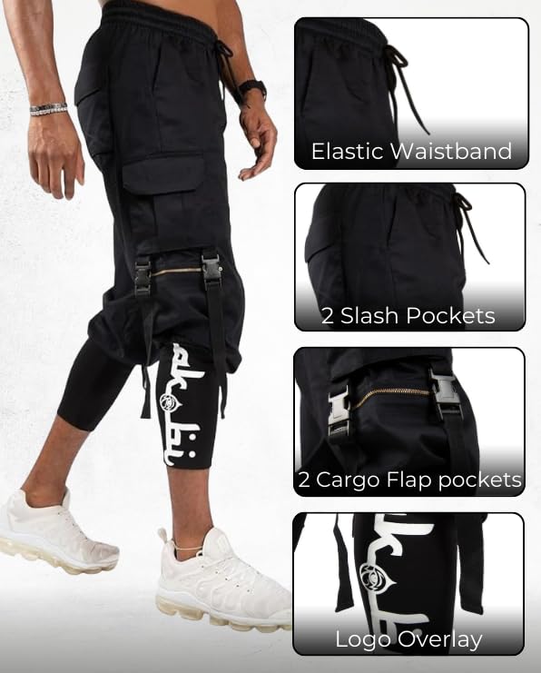 White Cargo Pants for Men Broadcloth Mid Rise Slant & Flap Pocket Sweat Pant