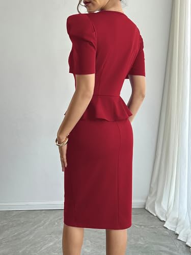 Mokayee Womens Summer Puff Sleeve V Neck Peplum Church Business Work Pencil Dresses