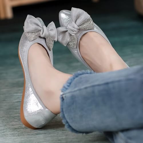 • STYLISH BOW ACCENT: A statement-making rhinestone bow detail serves as the focal point of this shoe, offering a perfect blend of playful charm and high-fashion elegance that stands out from basic flats.