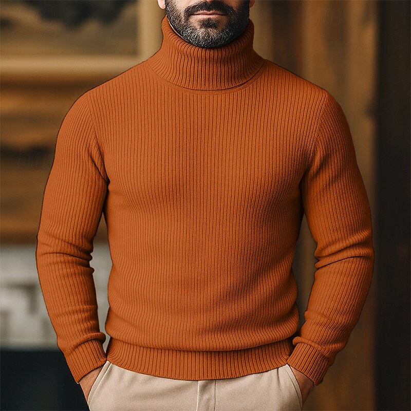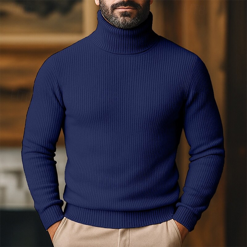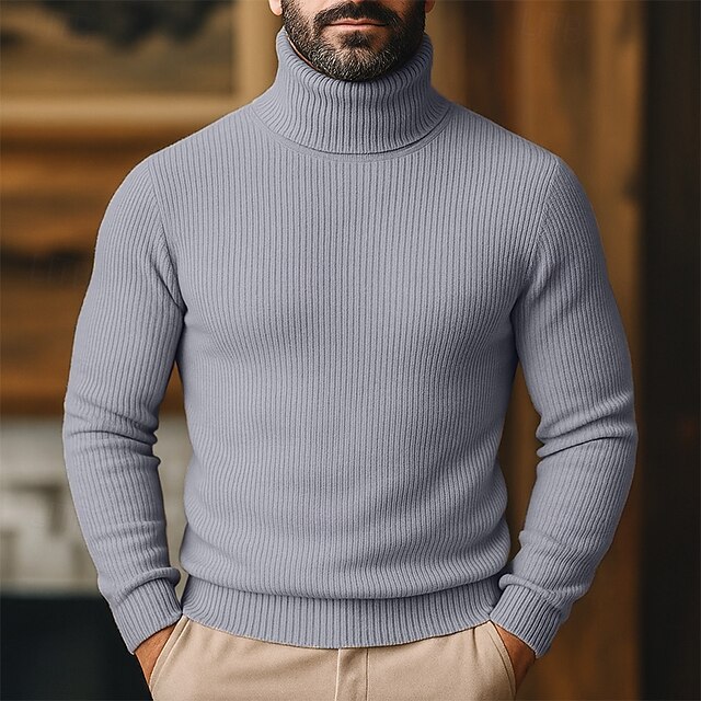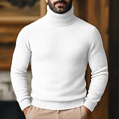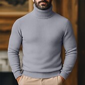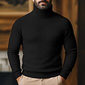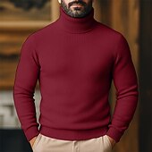 More information about Men's Sweater Pullover Sweater Jumper Ribbed Knit Regular Tops Knitted Slim Fit Plain Turtleneck Knitwear Contemporary Casual Daily Wear Clothing Apparel Fall Winter Wine Black S M L