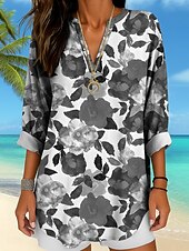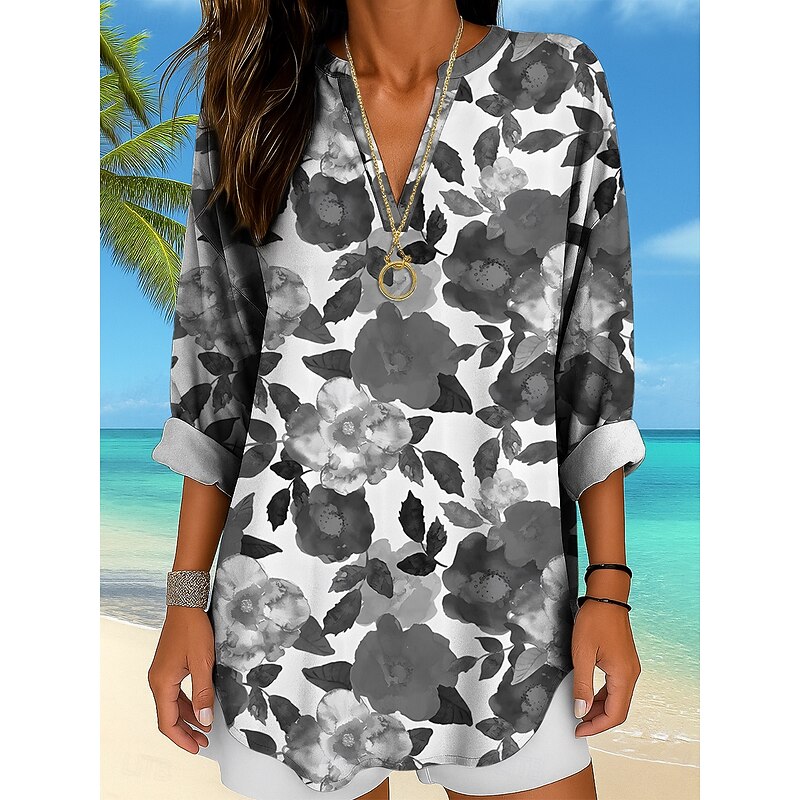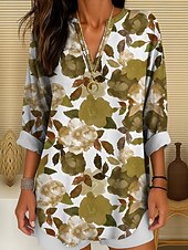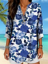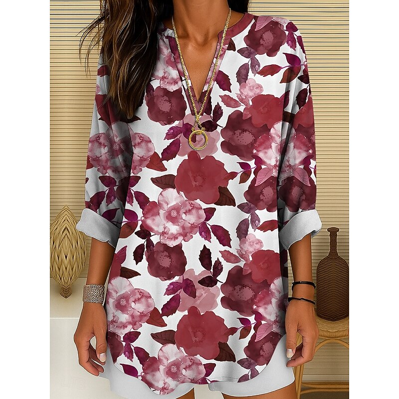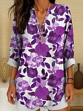 More information about Women's Blouse Tunic V Neck Long Sleeve Boho Casual Floral Graphic Vintage Tropical Regular Tops Daily Wear Print Yellow Red Blue Purple Green
