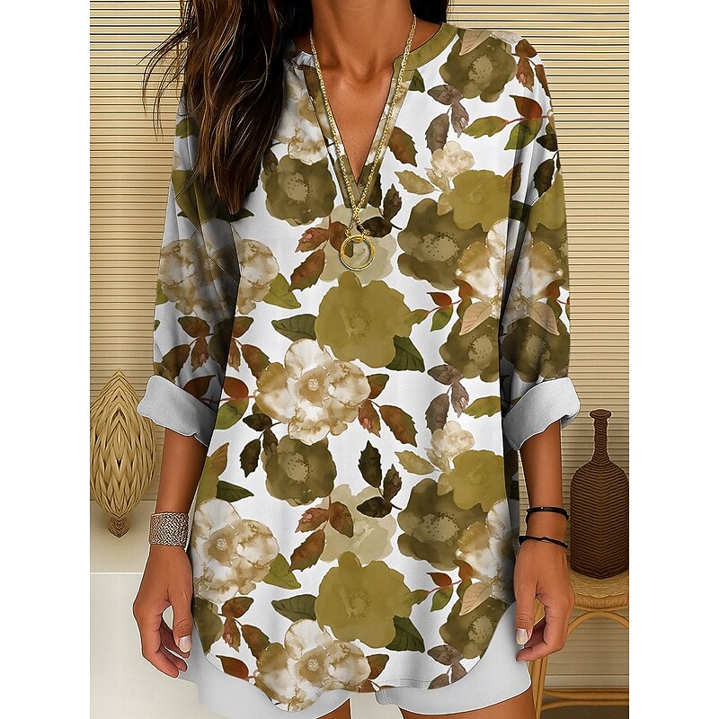 Women's Blouse Tunic V Neck Long Sleeve Boho Casual Floral Graphic Vintage Tropical Regular Tops Daily Wear Print Yellow Red Blue Purple Green 1