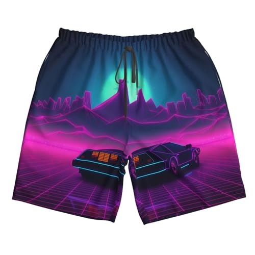 • Retrowave pictures Printed Swim Trunks for Men: These surf shorts can be worn in and out of the water during summer vacation. Our Men's Sweat Shorts Swimsuits using dye-sublimation technology that allows graphics lifelike, vibrant colors and comfy material will bring you a cool summer