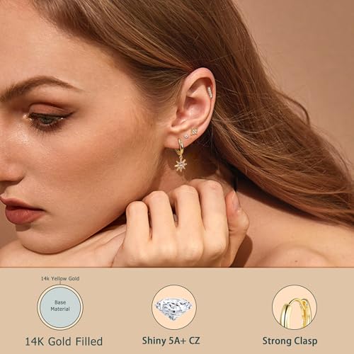 HOT ! IRONBOX 12Pairs 14K Gold Plated Huggie Hoop Studs Earrings Set for Women Small Dainty Minimalist Chain Earrings Cartilage CZ Ball Earring Sets for Multiple Piercing