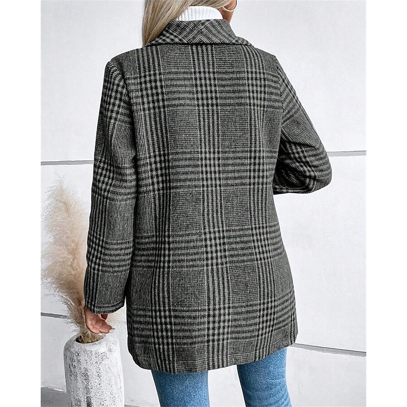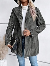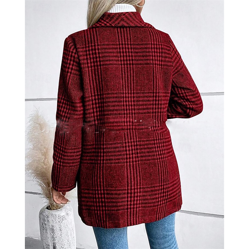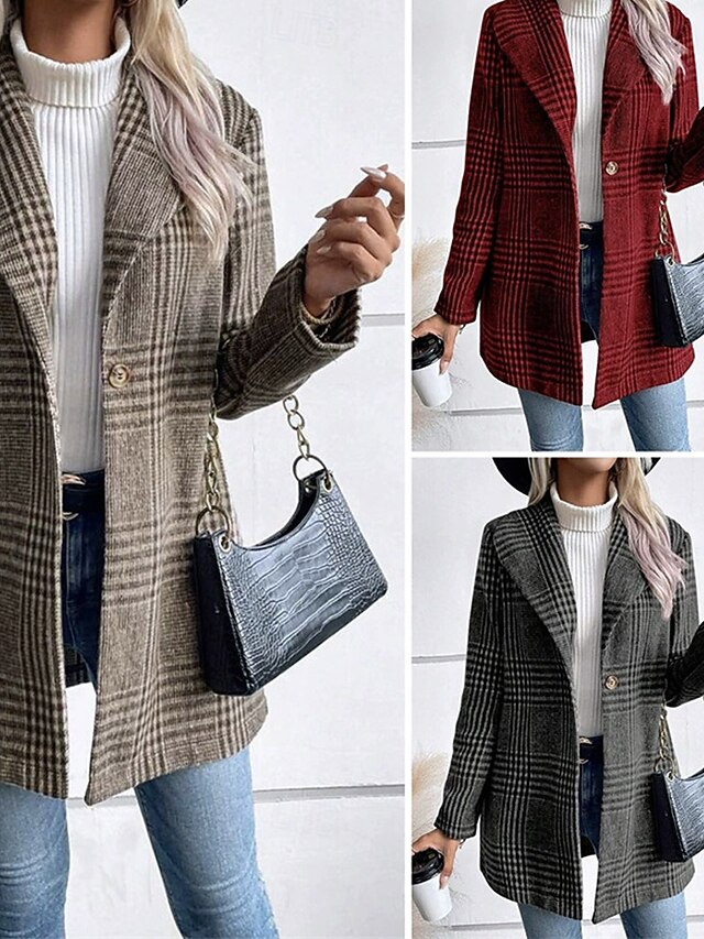 More information about Women's Blazer Comfortable Buttons Elegant Fashion Outdoor Lattice Going out Casual Daily Weekend Single Breasted Regular Lapel Regular Fit Long Sleeve Outerwear Red Camel Gray Spring Fall