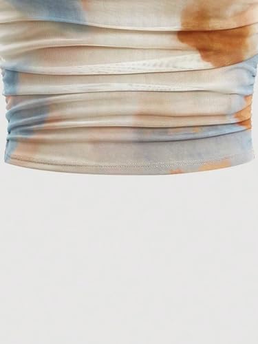 HOT ! Floerns Women's Tie Dye Spaghetti Strap Cut Out One Shoulder Ruched Crop Cami Top