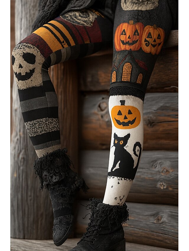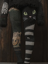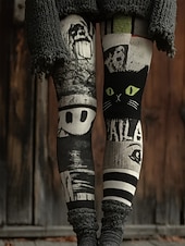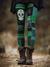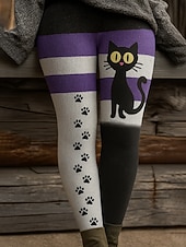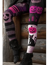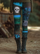 More information about Women's Leggings Vacation Vintage Ethnic Style Ankle-Length High WaistPantsHalloween Graphic Skull Cat 3D Print Quick Dry Breathability Soft Stretchy Outdoor Home Causal Pink Blue Orange Green Fall
