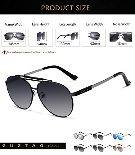 GUZTAG traditional Aviator Sunglasses for Men Polarized Sunglasses 100% UV Protection Aluminum Frame (black gray)