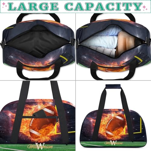 Kids Duffle Bag Personalized Gym Bag Overnight Bags, Ideal for Travel and Sports, Suitable for Men Women for Gym, Dance, Yoga, Durable Waterproof Sport Overnight Handbags Rugby Fire 3