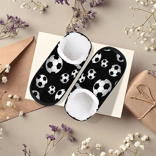 Tavisto Black White Soccer Balls Cozy Plush Lined Slippers - Cute Designs, Durable & Non-Slip Soles - Women's & Men's Indoor House Slippers_M 6