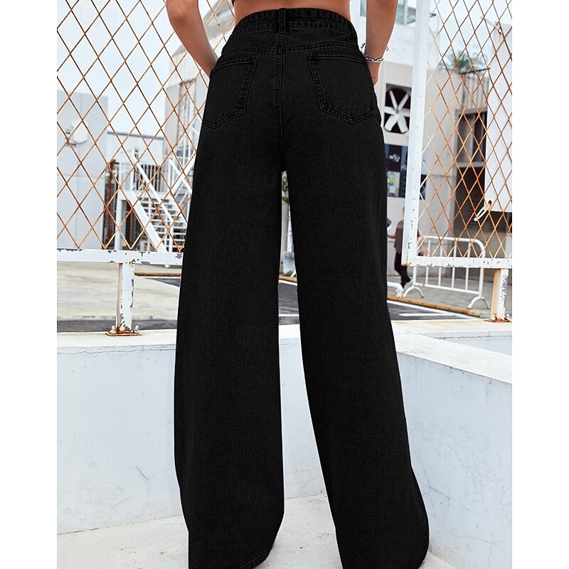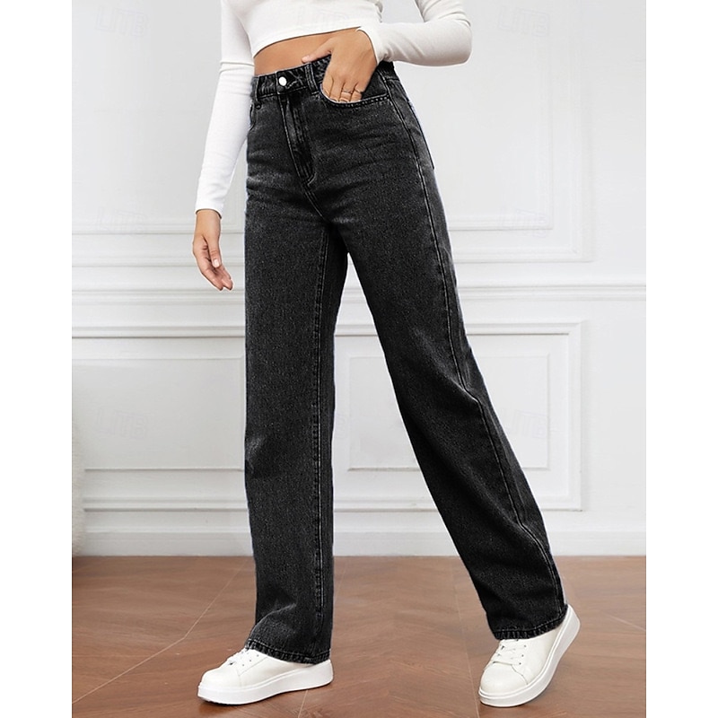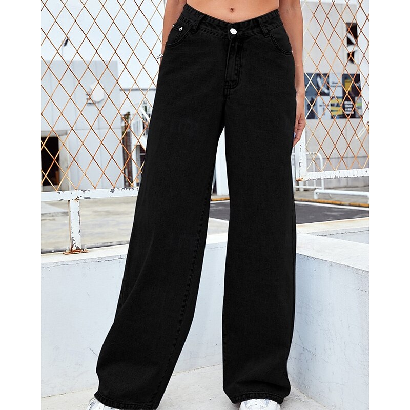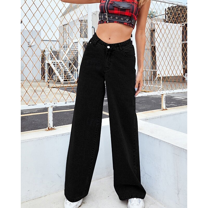 More information about Women's Jeans Chinos Straight Vacation Vintage Streetwear Full Length Medium Waist Plain Pocket Elastic Waist Comfortable Inelastic Micro-elastic Outdoor Street Daily Black Grey Navy Black White Fall
