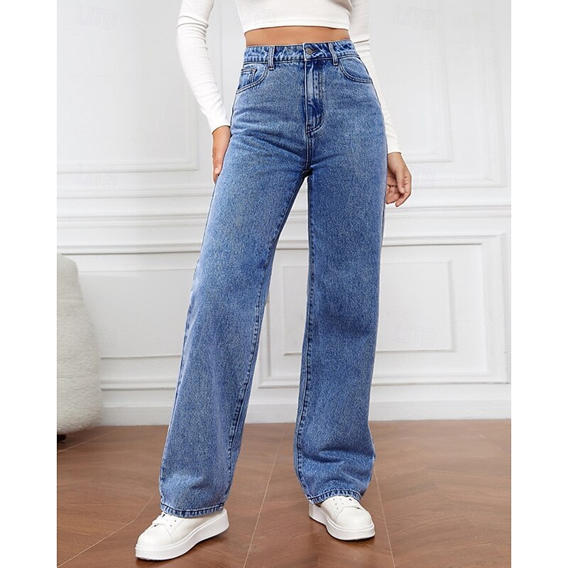 HOT ! Women's Jeans Chinos Straight Vacation Vintage Streetwear Full Length Medium Waist Plain Pocket Elastic Waist Comfortable Inelastic Micro-elastic Outdoor Street Daily Black Grey Navy Black White Fall