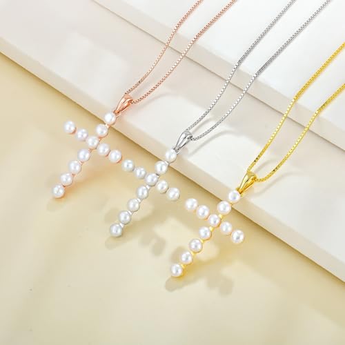More information about YL Cross Necklace 925 Sterling Silver Halo Freshwater Pearls Pendant Polished Religious Jewelry for Women