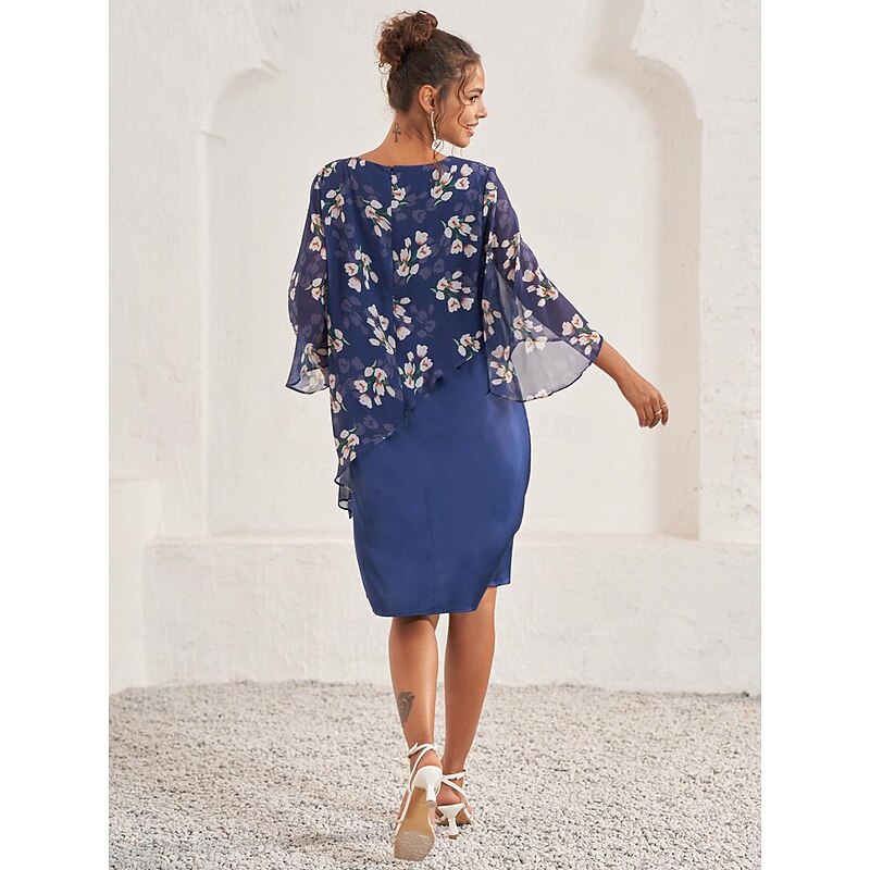 Women's Wedding Guest Dress A Line Dress Elegant Floral Midi Dress Chiffon Flared Sleeve Crew Neck Patchwork Regular Fit Wedding Guest Cocktail Party Blue Summer 7