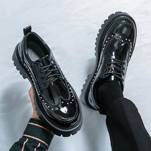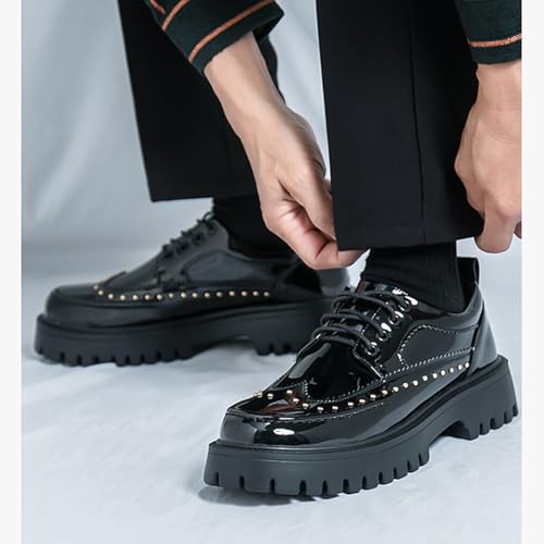 Platform Wingtip Oxford Shoes with Studded for Men's Patent Leather Wingtip Chunky Heel Lug Sole Non Slip Business Derby Oxfords for Dating Party Prom Wedding Causal Work Office Shoes 6