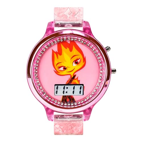 sought-after ! Disney Elemental Ember Lumen Kids’ Watch – Fiery Pink LCD Display with LED Lightshow Feature, Water-Resistant with Special Edition Gift Tin