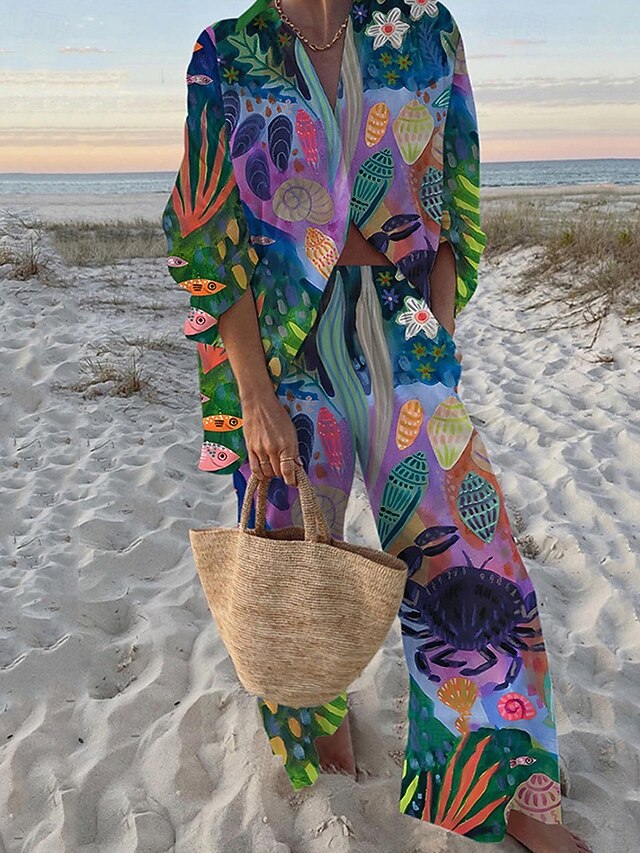 Highlights - Versatile and stylish shirt and pants sets - Eye-catching patchwork design - Classic shirt collar neckline - Perfect for creating fashionable outfits