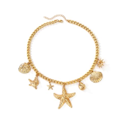 Seashell Necklaces for Women Big Starfish Shell Charm Chunky Gold Necklace Beach Jewelry for Women Summer Accessories