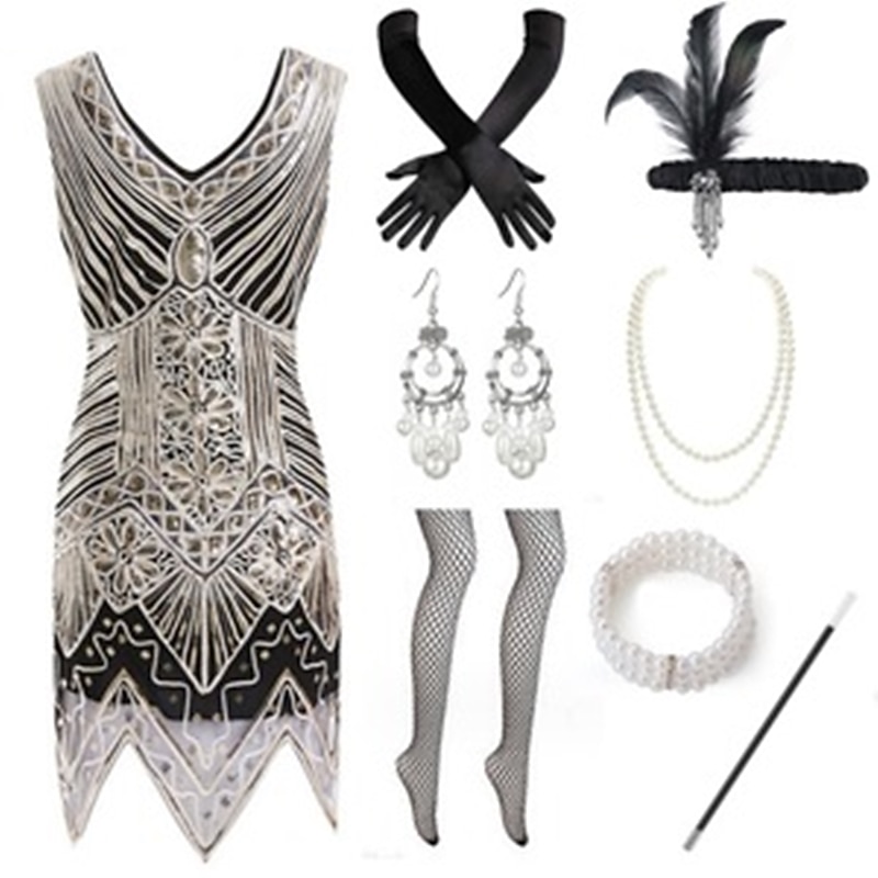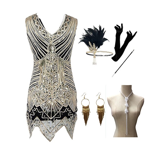 The Great Gatsby Plus Size Roaring 20s 1920s Cocktail Dress Vintage Dress Flapper Dress Outfits Masquerade Prom Dress Halloween Costumes Prom Dresses Women's Costume Vintage Cosplay Party Prom Dress 10
