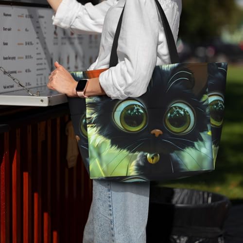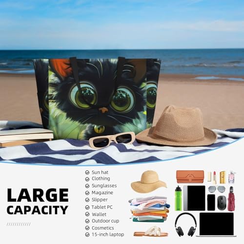 Cute Big-Eyed Black Cat Print Beach Pool Bags Tote For Women Ladies Large Gym Tote Carry On Bag For Weekender Travel Waterproof 7