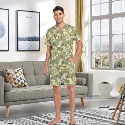 Laprad Men's Pajamas Set Short Sleeve Sleepwear Horses Floral Comfortable Loungewear 1