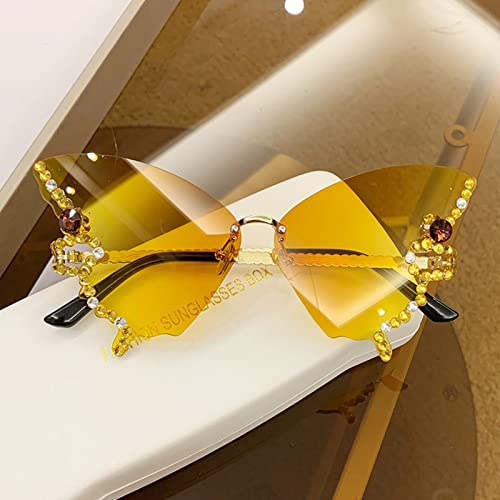 HOT ! Diamond Butterfly Sunglasses Women Rimless Sunglasses Small Face Bling Sunglasses -Eye Butterfly Glasses, Gradient Purple