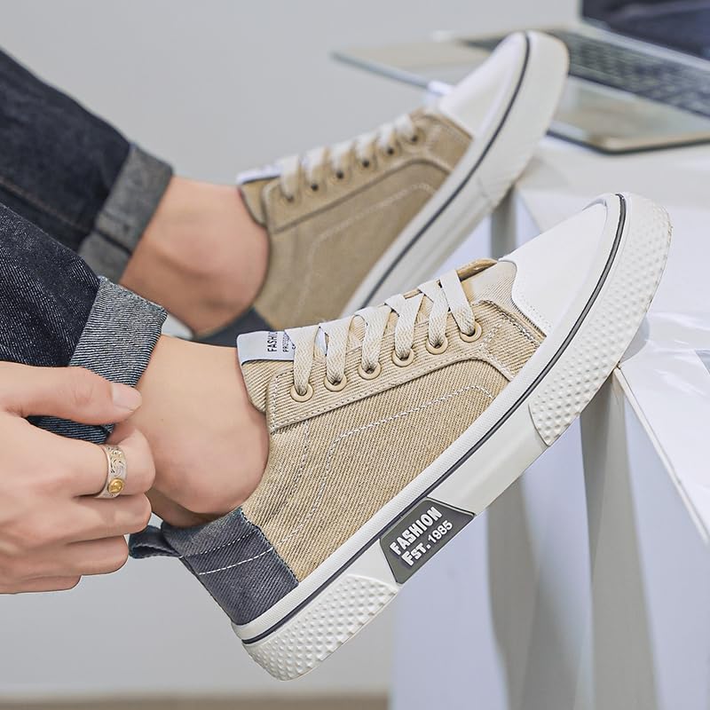 Men's Breathable Canvas Sneakers, Casual Low Top, Suitable for Outdoor or Driving, All-Season Lace Skateboard Shoes 5